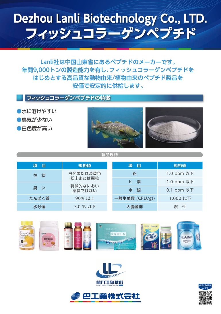 中国山東省に拠点を持つLanli社のフィッシュコラーゲンペプチドです。