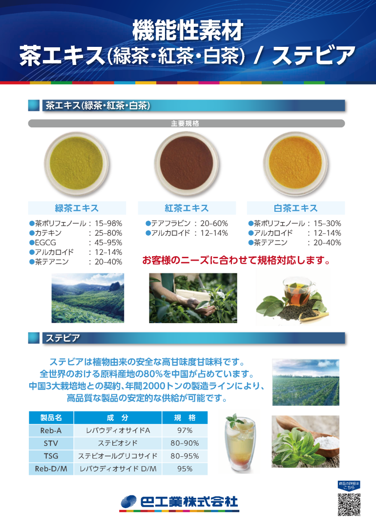 中国産のお茶エキス(緑茶 / 紅茶 / 白茶)です。