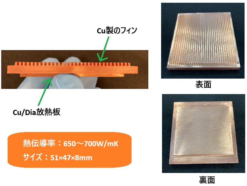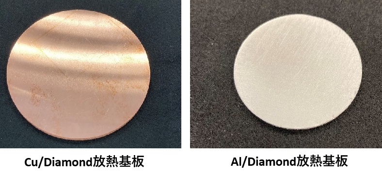 金属/ダイヤモンドの複合放熱基板でCu等の高熱伝導な金属よりも高い熱伝導率を誇ります。
